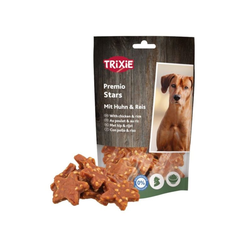 Trixie Premio Xmas Stars cu rață și orez, 100 g – gustările steluțe de Crăciun care aduc spiritul sărbătorilor și în bolul câinelui tău, combinând savoarea cu nutriția de calitate.