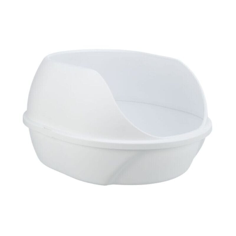 Litieră Trixie Simao cu ramă înaltă pentru pisici, 48 x 30 x 58 cm, alb – Curățenie și confort sporit pentru pisica ta. 🐾✨